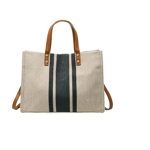 Made from durable canvas and lined with smooth polyester, it features a spacious interior, open-top access, and a striped design that’s both timeless and versatile. Perfect for daily use whether you're shopping, commuting, or traveling.