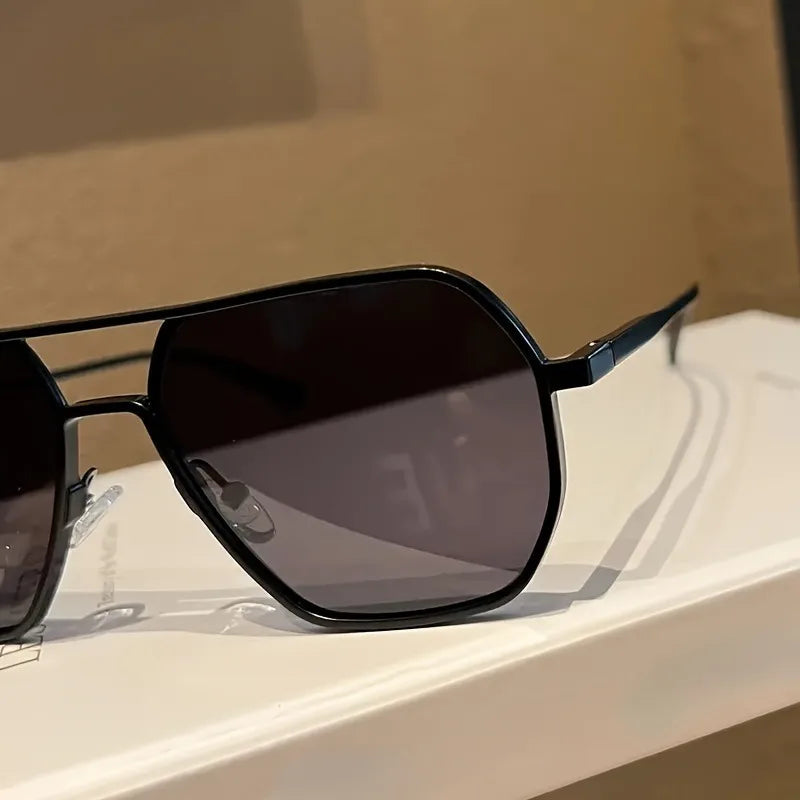 Stylish square polarized photochromic sunglasses with durable metal alloy frame. Perfect for driving, offering clear vision and full UV protection.